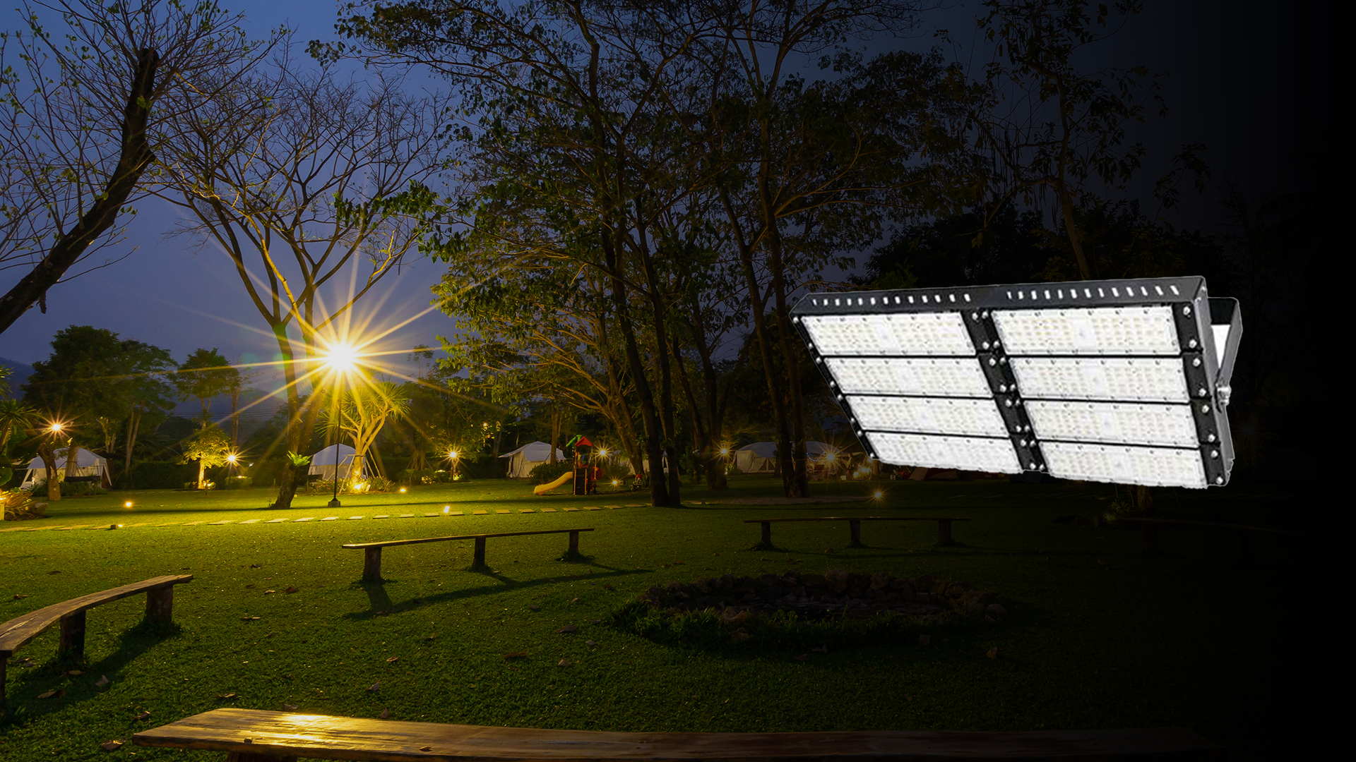 Cocok untuk stadion olahraga, pelabuhan, terminal, stasiun, lapangan parkir, fasad gedung.